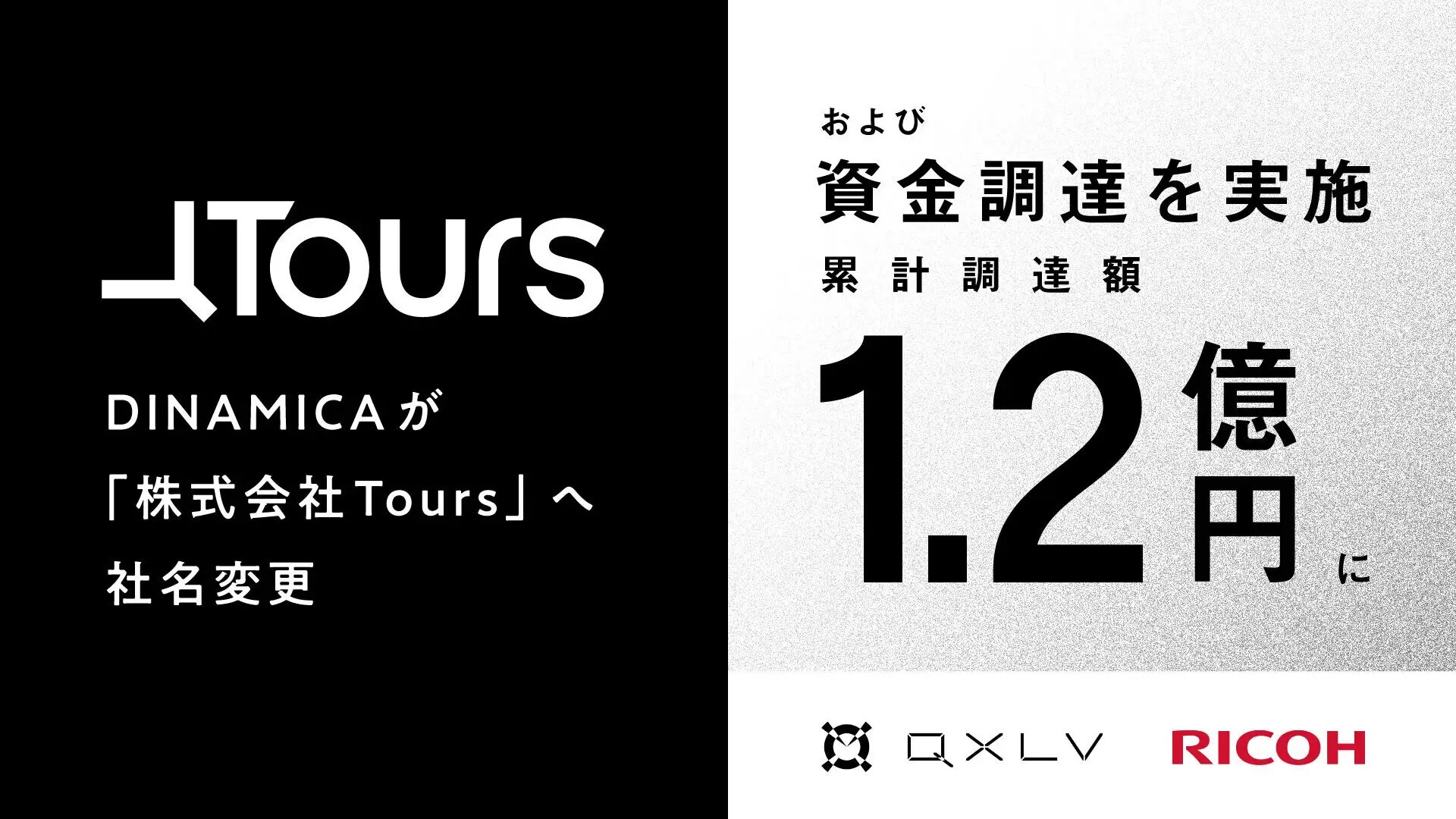 株式会社DINAMICA(本社:東京都渋谷区、代表取締役:濵田祐輔)は、自社プロダクト「Tours」の事業成長を加速するため、QXLV(クオンタムリープベンチャーズ)および株式会社リコーのCVCであるリコーイノベーションファンドを引受先とする第三者割当増資を実施し、累計調達額が1.2億円に達したことをお知らせします。