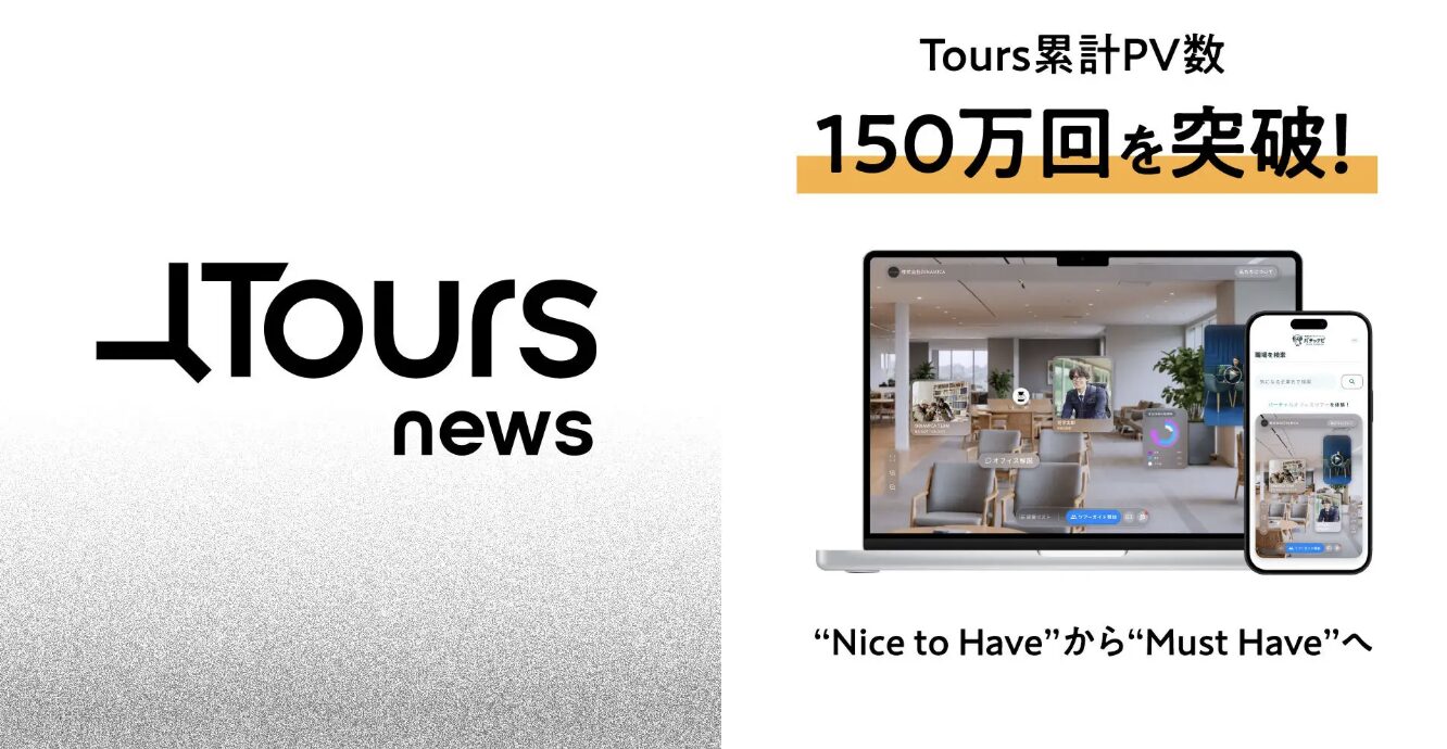 遠隔でも企業の「空気感」まで届けるオンライン採用体験ツール「Tours(ツアーズ)」が、リリースから1年半で累計150万PVを突破しました。